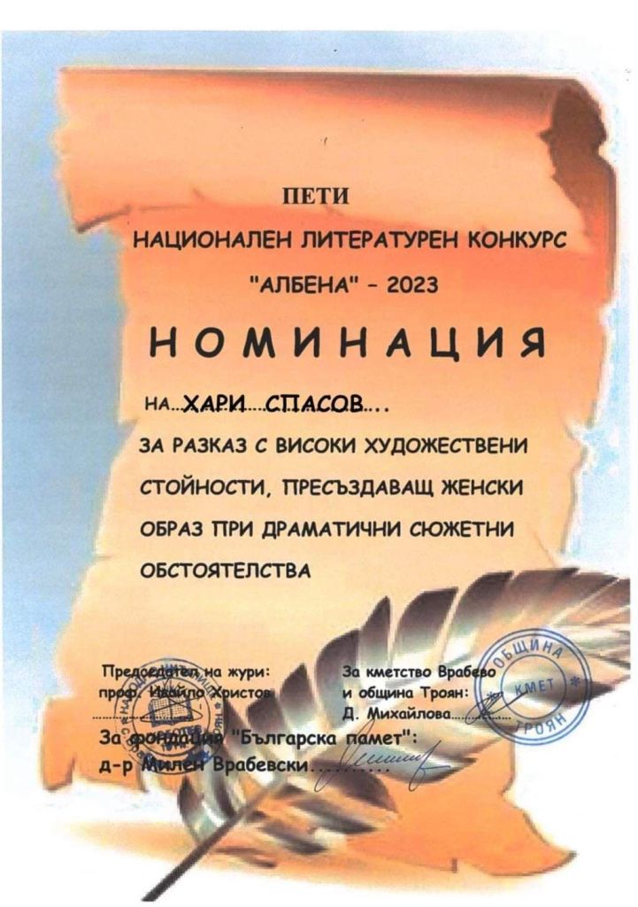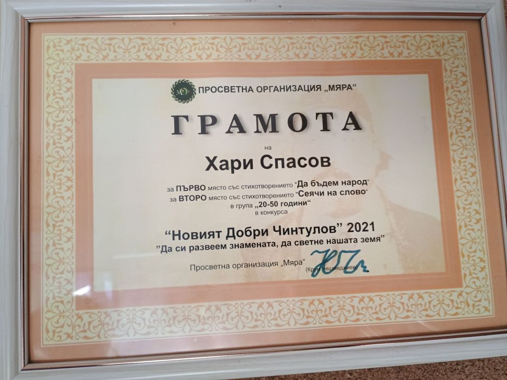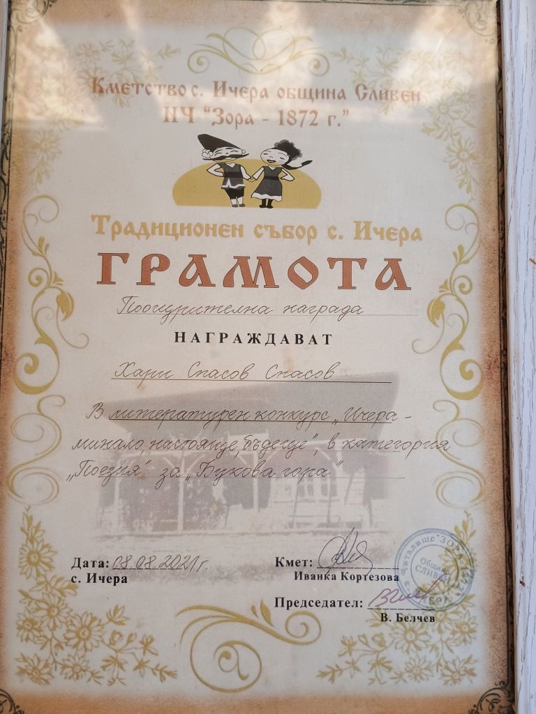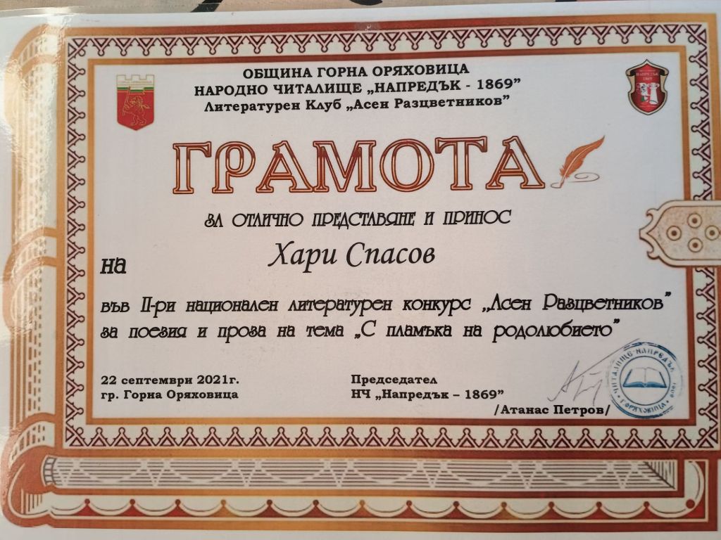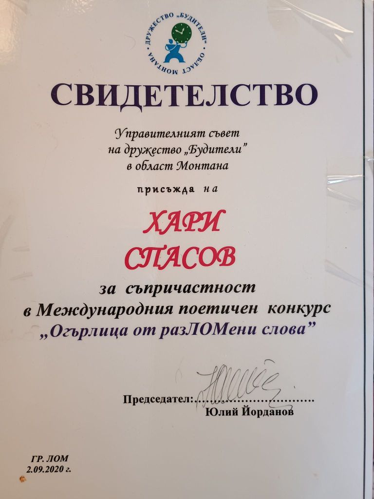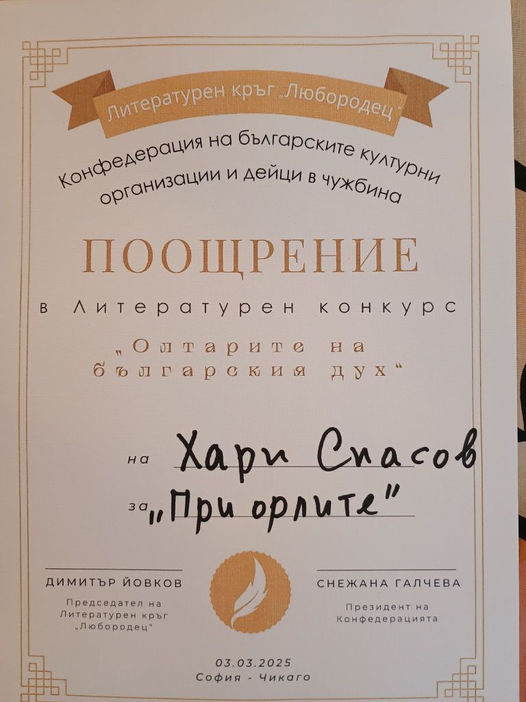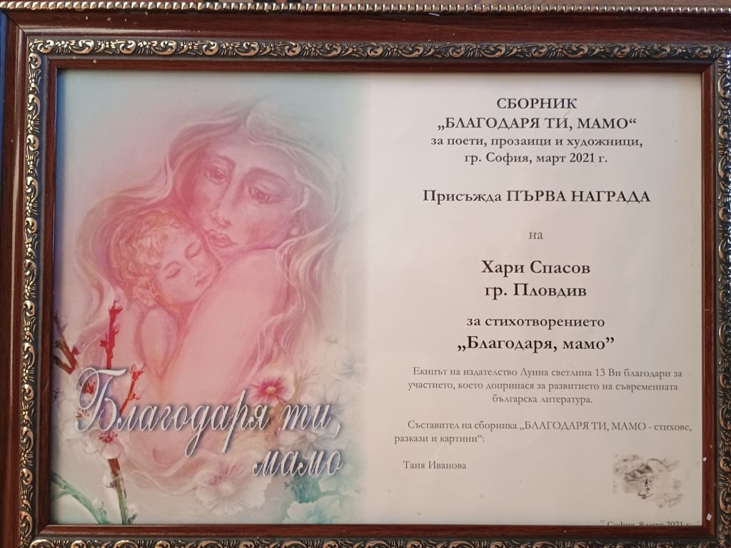 Дипломи и награди от литературни конкурси