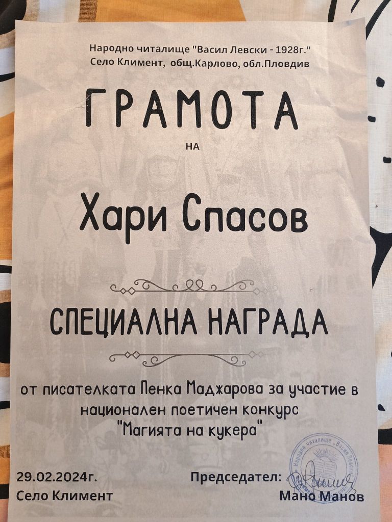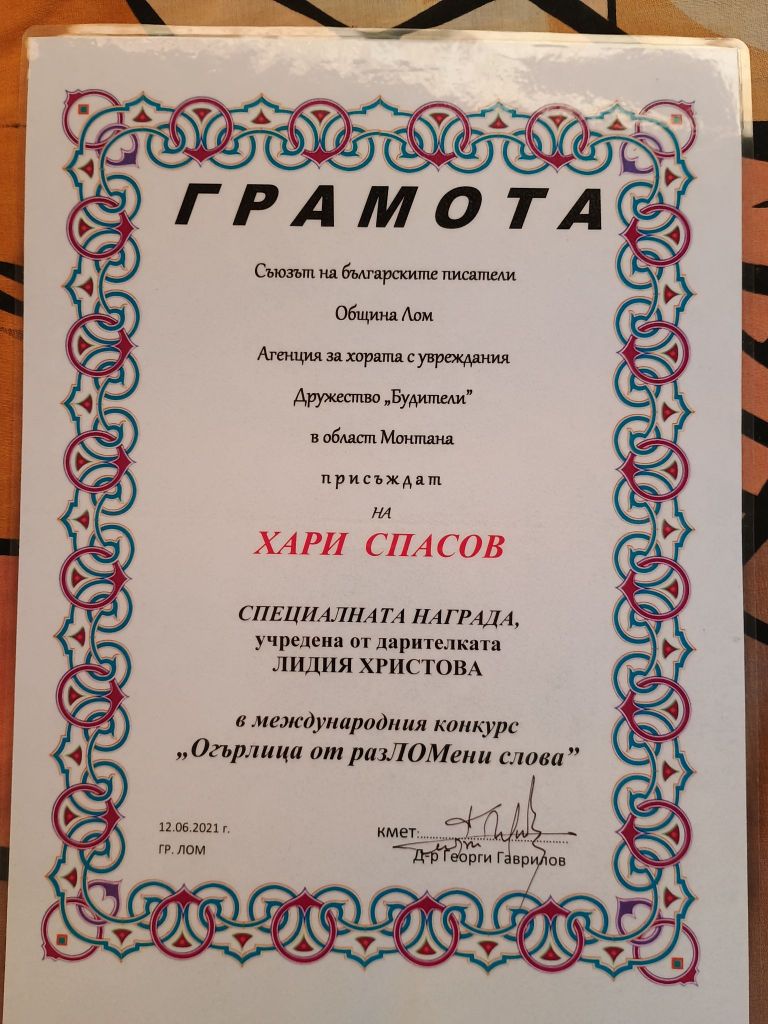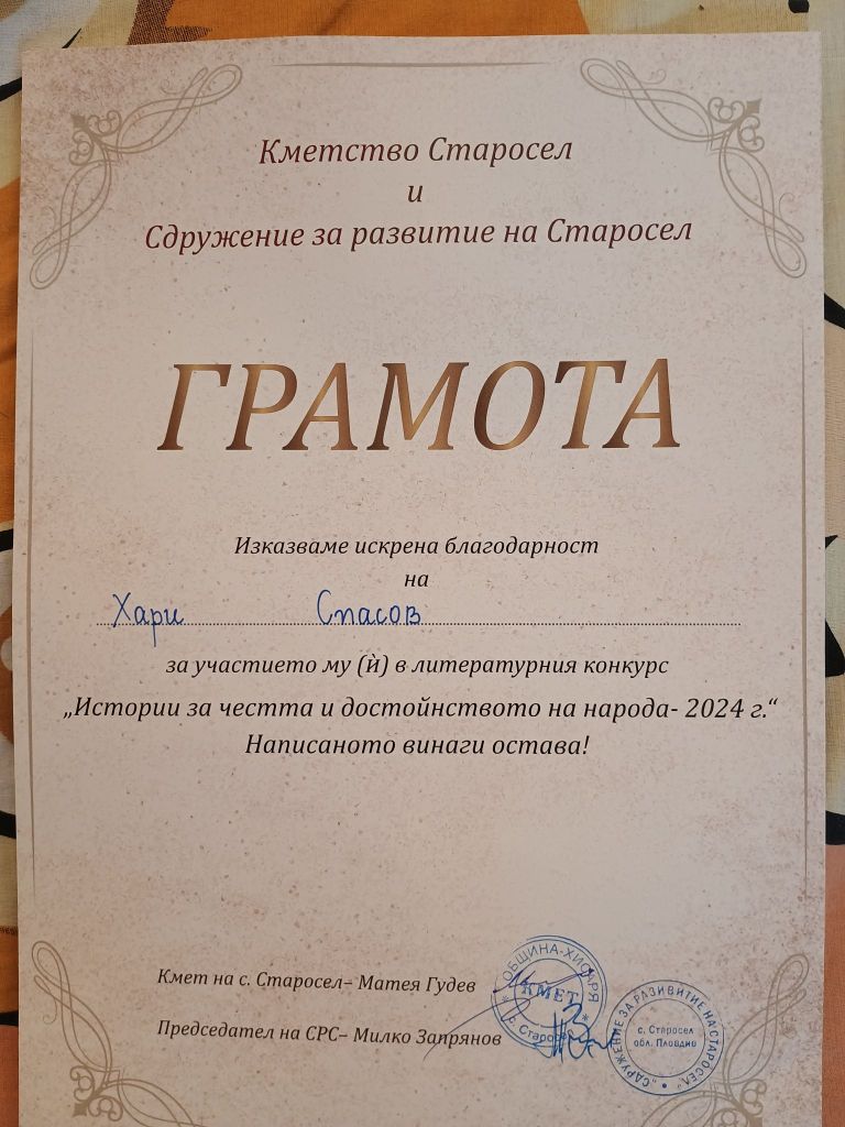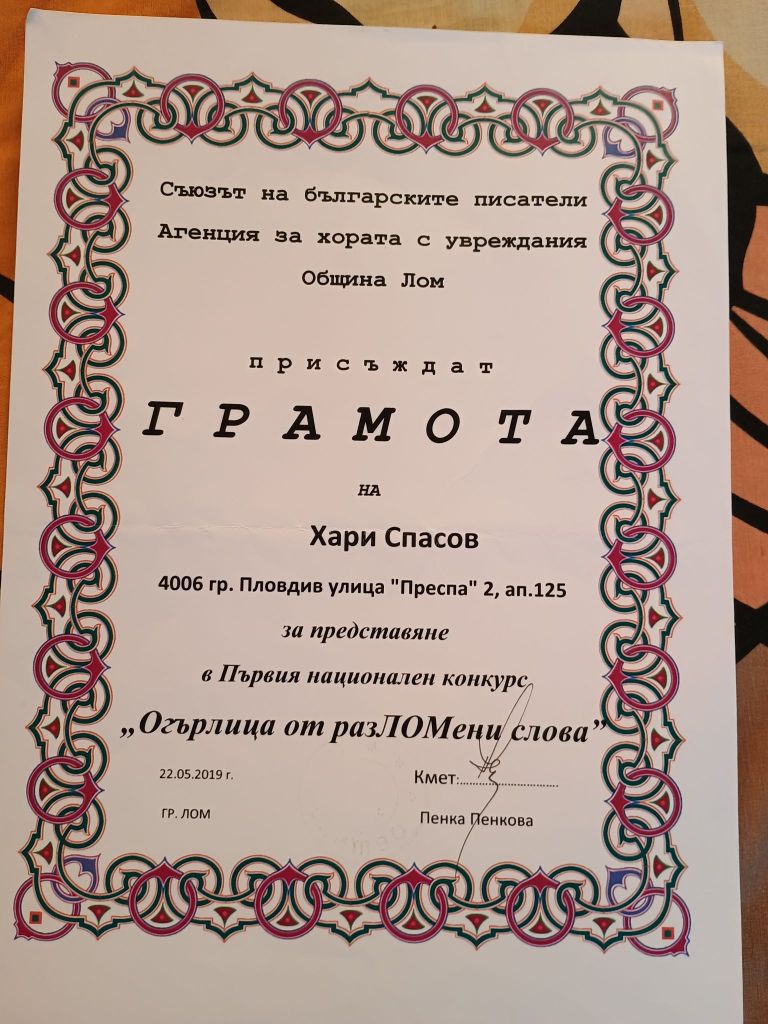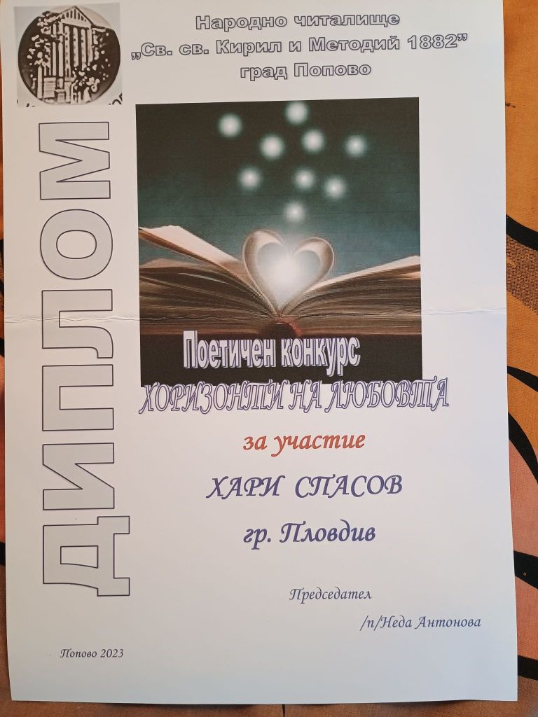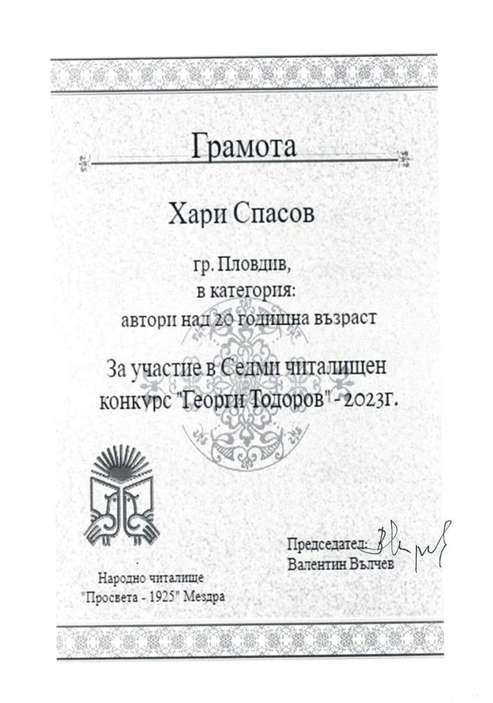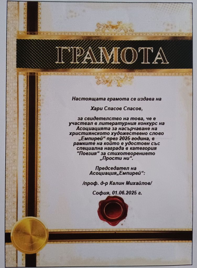 Дипломи и награди от литературни конкурси